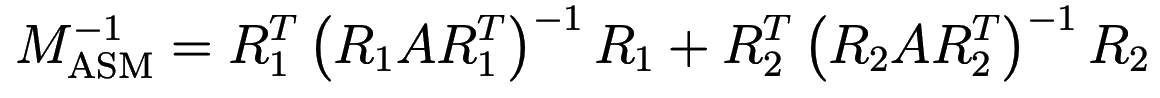 m$ ASM preconditioner $M^{-1}_\textrm{ASM}$. Each process computes its own dense block and stores it locally inside the